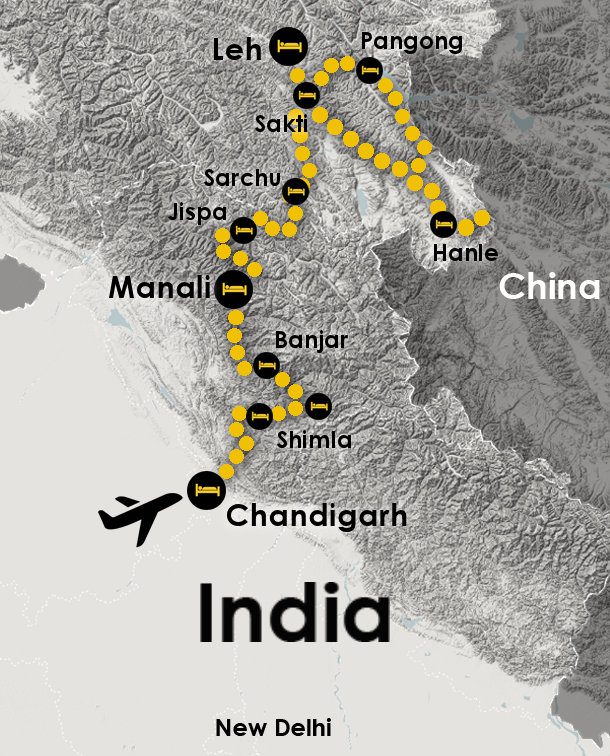 ננחת בנמה``ת בדלהי ומשם בטיסת פנים מוקדם בבוקר אל צ'אנדיגר (Chandigarh), הממוקמת בדיוק בגבול שבין המישורים שלרגלי ההימלאיה לבין תחילת התרוממות רכס ההימלאיה האדיר, מקום אידיאלי בשבילנו לאסוף את האופנועים בשעות אחה``צ ברגוע כדי ללמוד אותם קצת, ובעיקר כדי לנוח מהטיסות ולהתכונן...